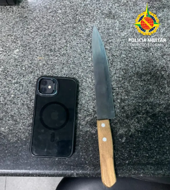 Durante a abordagem, o suspeito tentou se desfazer de uma faca, jogando-a no chão, mas acabou detido. Com ele, os militares encontraram o celular da vítima, além de documentos e cartões pertencentes a outras pessoas. A vítima reconheceu o autor como responsável pelo crime.